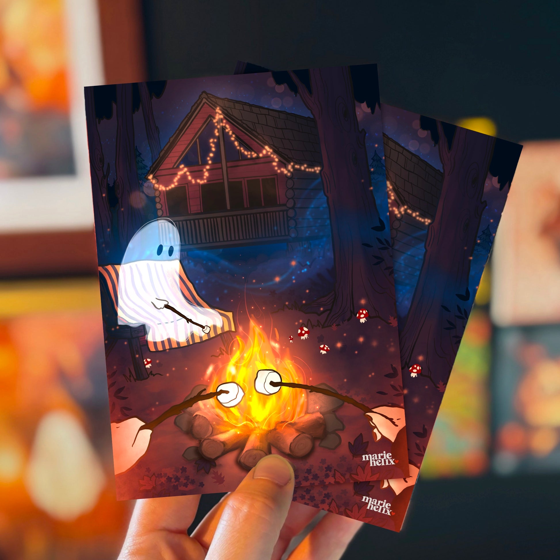 Rejoignez Percy le petit fantôme pour une veillée chaleureuse au cœur de l’automne. Autour d’un feu de camp, sous les guirlandes d’un chalet cosy, l’ambiance se fait douce et magique, parfaite pour savourer des marshmallows grillés et la féérie de la saison.